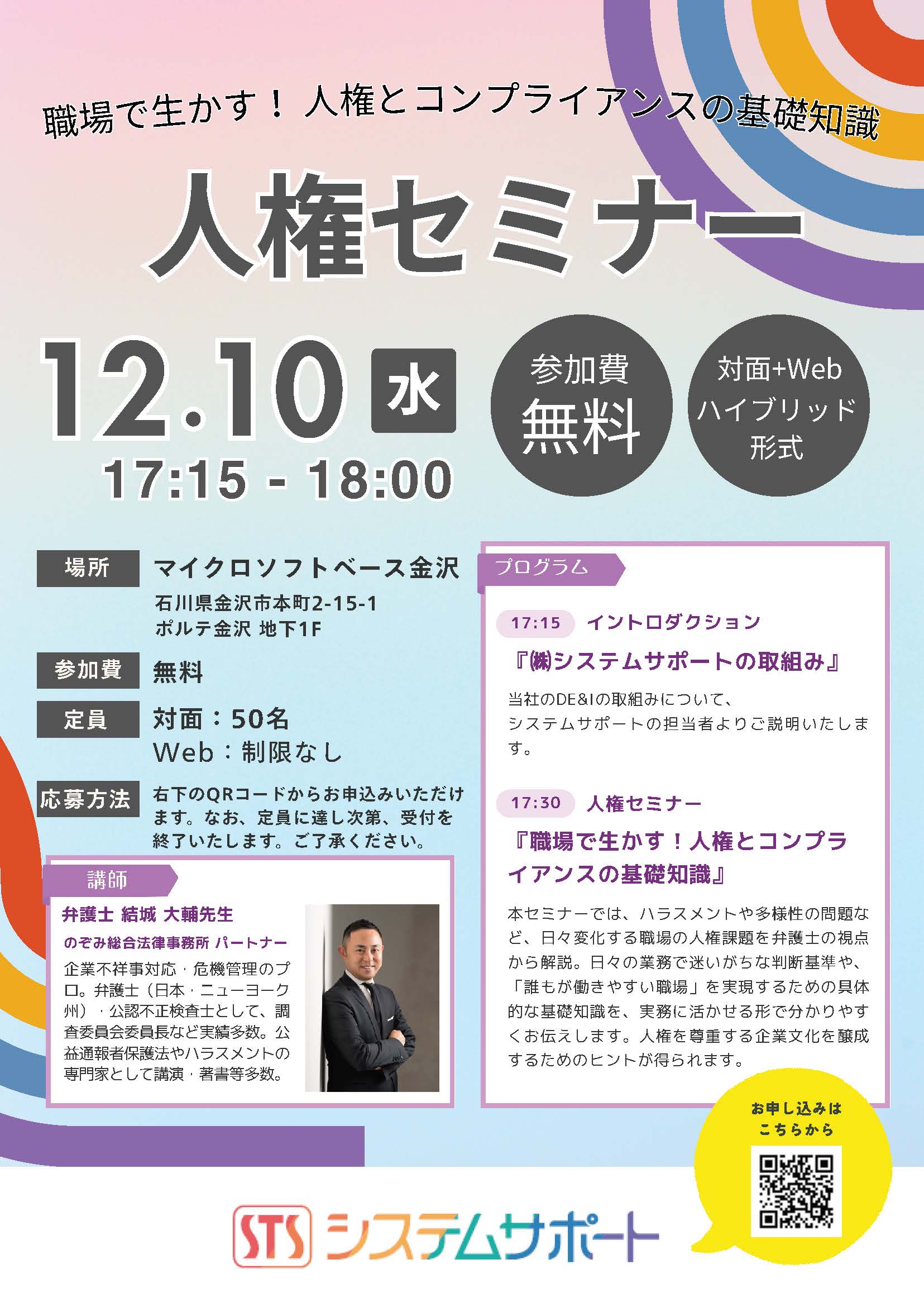 本セミナーでは、のぞみ総合法律事務所 弁護士の結城大輔先生を講師に招き、ハラスメントや多様性の問題など、日々変化する職場の人権課題を弁護士の視点から解説。
