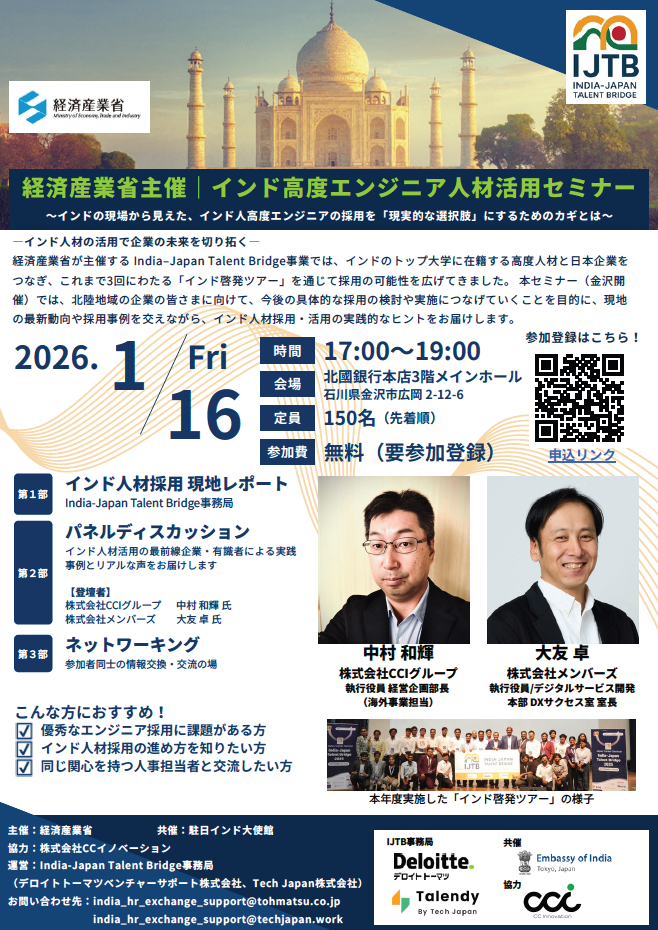 運営:India-Japan Talent Bridge事務局(デロイトトーマツベンチャーサポート株式会社、Tech Japan株式会社)