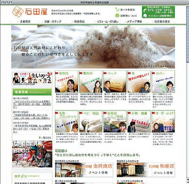 寝具の製造、販売を手がける石田屋は、取り扱う商品の品質の良さに定評がある。例えば、アイダーダックの羽毛布団もその一つだ。アイダーダックはアイスランドに生息する水鳥で、その羽毛は複雑に毛が絡み合い、少量でも抜群の保温力を発揮する。年間に布団3,000枚分しか採取できず、偽物も多く出回るため、同社では社長自らが現地まで出向き、品質を確認した上で仕入れ。これを職人が手作業で布団に詰め、一枚一枚丁寧に仕上げている。