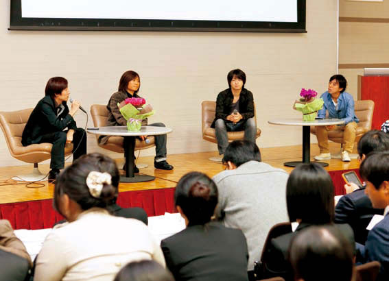 クリエイターを目指す学生が多く来場したコンテンツセッションでは、まず、テレビCM のCG 制作などを手がけるドロイズ(東京)の尾小山良哉代表が講演。「メディアやデバイスが多様化したため、以前に比べ、表現の手法もフレキシブルになった」と現状分析した上で「今こそ自由に発想できるチャンスであり、手法にとらわれずクリエイティブに挑んでほしい」とメッセージした。
