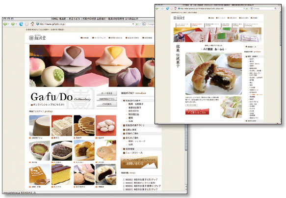 和座本舗と同じく「WEB1グランプリ2007」で審査員特別賞を受賞したのが雅風堂のネットショップである。白を基調としたシンプルなサイトでは、彩り豊かな和菓子の写真が大きく扱われ、目を引きつける。