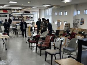 誰が聞いても素晴らしい取り組みであるが、肝心の販路開拓で新たな壁に直面している。昨年、ホームページで再生品の販売をスタートしたばかりで、年間売上はまだ100万円程度。ホームページの作り方や、SEO対策など工夫が必要で、まだまだこれからのよう。どんな売り方、販売方法がこの商品に相応しいのか、試行錯誤の只中である。廃番になった商品が大型倉庫を埋め尽くしている状況を何とか少しずつでも再生品とし販売していかないと、倉庫がいくつあっても足りない。実質的に新品であるが、メーカーが廃番とした時点で、その商品は型落ちの古い商品になると同時に、数が揃わない等の理由があって廃番になるため、一般的な家具の商流には載らなくなる。同社は作る力、修理する力はあるが、販売する営業力がないため、販路開拓に苦戦中。BtoBは景気に左右されて波があるため、法人需要が低迷した時に、BtoCの個人客の需要を取り込んでカバーできるよう、ホームページの充実、SNSの活用、求人の仕方、広告宣伝の在り方等々を日々の業務と並行しながら、それらのノウハウを地道に蓄積していくことの大切さを、木村工場長は自らに言い聞かせるように語る。