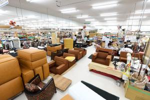 イスに関しては、素材である木、イスに張る生地が大量に余っていることから、塗装色や生地の色を選んでもらい、その注文に応じて仕上げた再生品を再販している。メーカー側も「廃棄ゼロ」を求めているため、廃番や廃棄になったイスからメーカーのタグなどを全て取り除き、再生品として世に送り出している。環境に優しい企業活動への関心の高まりと共に、再生品の販売に協力的な企業も増えてきた。メーカーで不要になった未仕上げの在庫品については、格安で譲り受け、同社の工賃・手間賃がプラスされて販売価格が決まるため、新品のメーカー品と同等の商品が半値に近い価格で購入できる。メーカーは環境に優しい企業を標榜でき、消費者はいいものを割安に買え、同社は捨てていたものが売上になる、三方良しの好循環が生まれる。