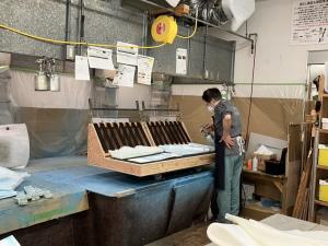 同社には国家資格を有する職人が多数在籍している。創業当時は、定年退職したベテランのシルバー人材を採用しながら若手職人を育成し、ベテランの人たちが退職していった現在は、当時の若手が40代の中堅職人として育ってきている。同社の工場入口には、1級椅子張り技能士4名、2級椅子張り技能士5名、家具手加工2級技能士2名、建築施工管理技士2級4名、職業訓練指導員3名、2級建築士1名、インテリア家具コンシェルジュ2級2名の氏名が掲げられている。優秀な職人を絶え間なく育成していくことが、同社にとっての重要な課題であると同時に、最大の武器にもなっており、有資格者を含め40名あまりの職人集団が同社の宝である。こうした既存の職人技だけでなく、最新のCAD・CAMスキャナーシステム、NCルーターなどの最新機器も導入している。今後はAIやITも融合した新しい時代のモノづくりにも取り組んでいく考えだ。能登半島地震で人口減少が顕著に進んでいることから、人手不足は深刻である。「わが社単独で求人や人材育成と言っても容易ではないため、地域の企業さんとヨコのつながりを深めていく中で、互いに協力できるところは互助の精神で取り組み始めています。」と木村工場長は力を込める。同社は、国内に日本人の職人の技を残し、事業全体を管理できる人材を育てていくことに注力しており、外国人労働者の採用は念頭にない。