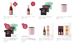 スパークリングワインと聞くと、フルートグラスで気取って味わうイメージがあるが、そうではなくタンブラーに注いで飲むもよし、グラスに氷を入れて飲むもよし、その人が好きなように飲んでもらうカジュアルな飲み方を提案している。キャラクターをラベルにしたワインはあまりないことから、そのユニークさも魅力の一つ。販売はメンバーのぶどう園の直売所、JA加賀元気村の二か所。地元の食品卸問屋との取引がスタートしたことから、これから県内のあちこちのスーパー等の店頭で販売が始まる。これまで販路が限られていたにもかかわらず、発売から2年足らずの間にトータルで3、000本あまりを販売。ユタカーナファンを一人でも多く増やしていくべく、ユタカーナのキャラクターをモチーフにしたTシャツやタンブラーを商品化し、ホームページやイベント会場で販売している。