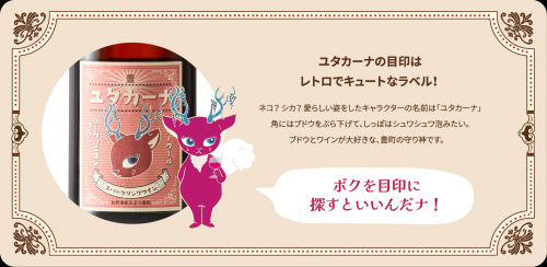 名前の由来は、「豊町」+「トスカーナ」。ワインの世界的産地として知られるイタリアトスカーナ州は、伝統や格式にとらわれない生産者が、自由な発想でおいしさを追求して造ったワインが、1970年代に「スーパータスカン」というイタリアワインの歴史を変えるジャンルを生み出す。丸山さんたちの今回の取り組みは、ワインの常識にとらわれない発想で、スーパータスカンの成り立ちと通じることから、豊町とトスカーナの地名を掛け合わせ「ユタカーナ」と命名する。キャラクターの愛くるしいシカは、なんと丸山さんの奥さんがデザインしたオリジナル。丸山さんたちが丹精込めて栽培したぶどうの魅力を最大限引き出すためには「餅は餅屋」に。豊町の多くのぶどう農家と以前から親交のある、北陸では老舗の「白山ワイナリー」に醸造を委託。