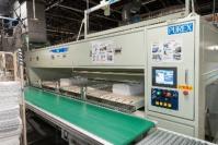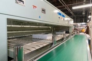加賀温泉郷の旅館はバブルの頃までは同社のシェアが高かったが、バブルが崩壊し、地元資本が破綻し、全国にチェーン展開する県外資本に代わった段階で、同社との縁が切れるケースが多く発生し、現在は5割前後のシェア。その一方で、福井県のあわら温泉では同社のシェアは8割近く、高い支持を維持してきている。同社の中では、加賀温泉郷、あわら温泉、金沢市内のホテル・旅館がおよそ3分の1ずつ。現在、北陸三県にリネンサプライ業者が十数社ぐらいあるが、リネンサプライ事業は、長細い30メートルプールのような超大型洗濯・乾燥機、プレス機といった設備がないとできないことから、ほぼ同社と同規模のところが主流。1日に15トンあまりの使用済みリネンを洗濯し、乾燥させ、プレスすることを想像すれば、その設備の大きさが分かる。同社が導入している超大型の連続洗濯機は、シーツを投入すると、洗濯、すすぎ、脱水、乾燥まで個別の層にて自動で行い、ベルトコンベアでロールプレス機に流れていくため、途中の作業には一切人手が不要。最新型を導入するには数千万円以上する高額な設備。